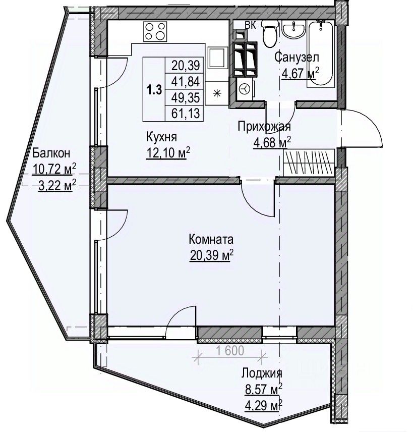 Продаётся 1-комнатная квартира в строящемся доме (Дом 3-а), срок сдачи: III-кв. 2027, общей площадью 49.35 кв.м., на 12 этаже. Жилой дом от застройщика "Власта Инвест Крым" в городе ялта на улице И. Левитана.