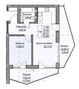 Продаётся 1-комнатная квартира в строящемся доме (Дом 3А), срок сдачи: II-кв. 2027, общей площадью 50.57 кв.м., на 4 этаже. Жилой дом от застройщика "Власта Инвест Крым" в городе ялта на улице И. Левитана.