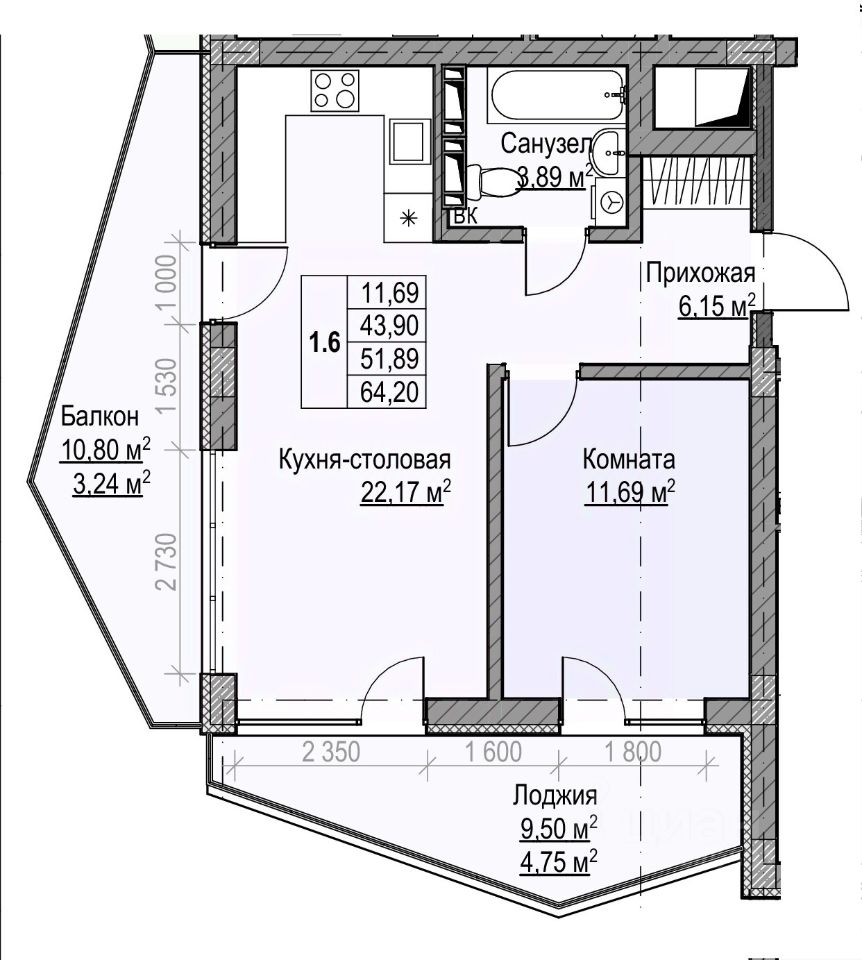 Продаётся 1-комнатная квартира в строящемся доме (Дом 3А), срок сдачи: II-кв. 2027, общей площадью 51.89 кв.м., на 5 этаже. Жилой дом от застройщика "Власта Инвест Крым" в городе ялта на улице И. Левитана.