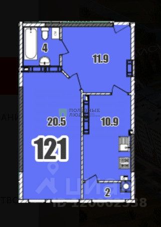 Квартира состоит из просторной комнаты 20,5 м2 и кухни-столовой 10,9 м2, соединенной с лоджией 2 м2, большой прихожей 11,9 м2 и совмещенного санузла 4 м2. Высота потолков 2,85 м.