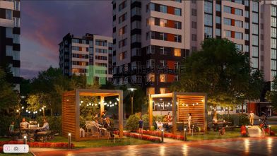 Современный жилой комплекс представляет собой десятиэтажные дома с благоустроенной прилегающей территорией.