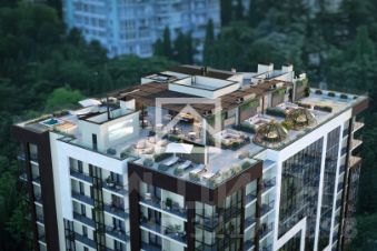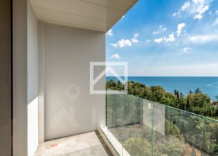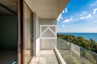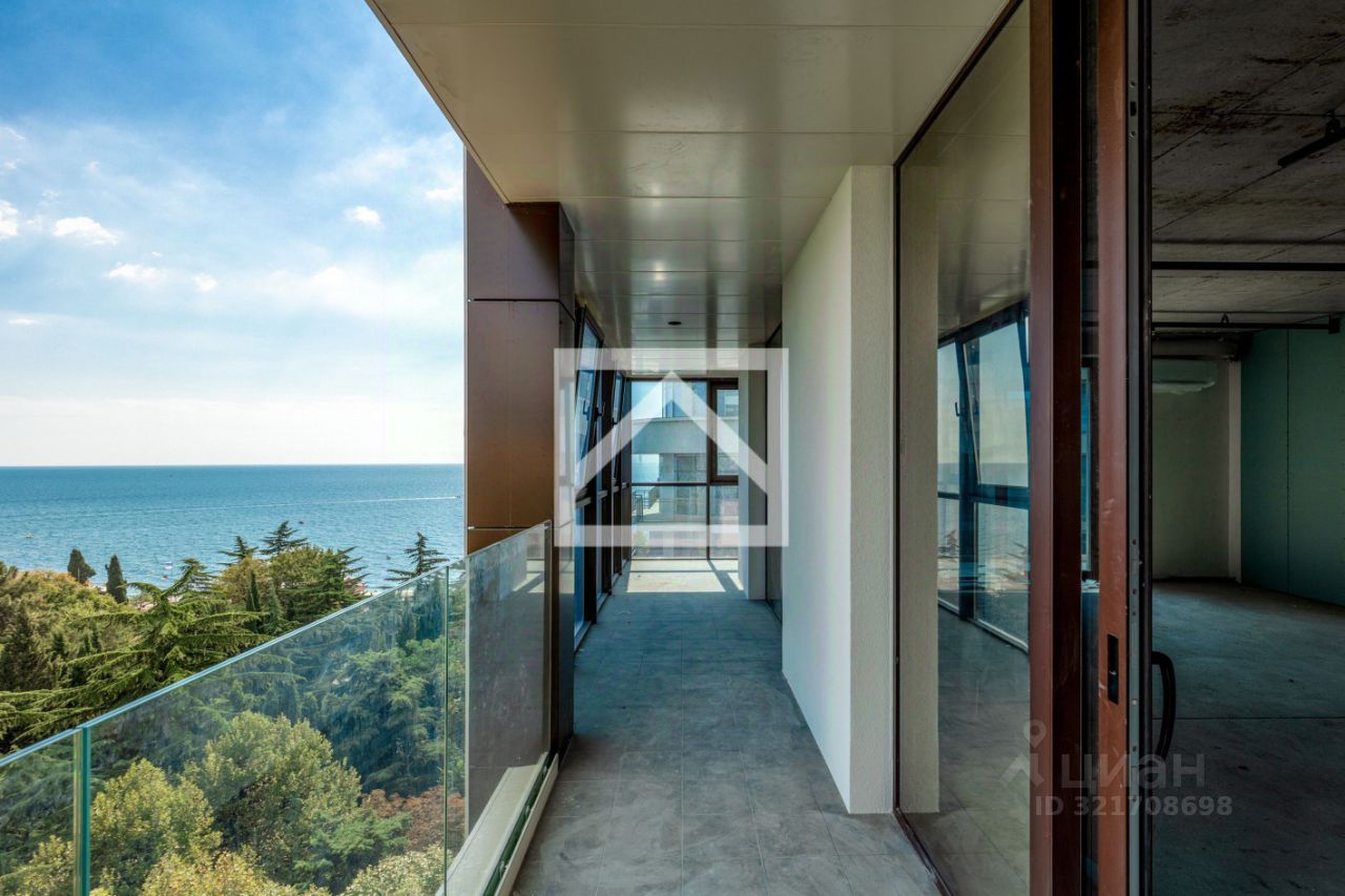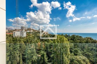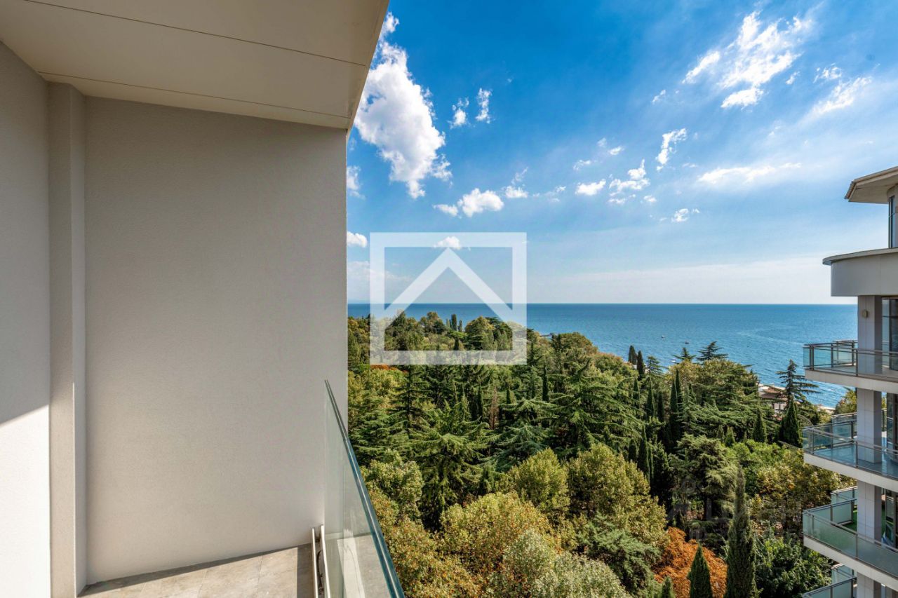 Апартаменты (151 м²) находятся на 9-м этаже 12-этажного здания. Ключевыми преимуществами апартаментов являются — панорамные окна с захватывающими видами, предчистовая отделка и свободная планировка, позволяющие реализовать индивидуальный дизайнерский проект, а также удобное расположение в центре курортной инфраструктуры.