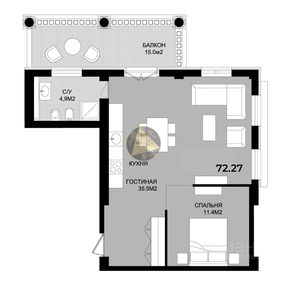 Срочно продаётся 1-комнатная квартира общей площадью 72,27 м2