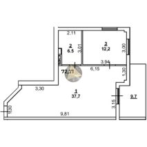 Срочно продаётся 1-комнатная квартира общей площадью 72,27 м2