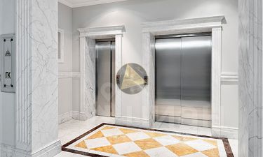 - Фасады облицованы декоративным гранитом, а холлы выполнены в классическом итальянском стиле с использованием натуральных материалов. Полы выложены авторской мозаикой из мрамора. В каждом корпусе установлены пассажирские и грузовые лифты.