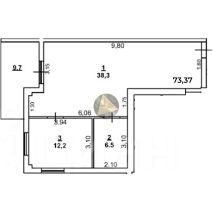 Срочно продаётся 1-комнатная квартира общей площадью 73,37 м2
