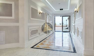 - Фасады облицованы декоративным гранитом, а холлы выполнены в классическом итальянском стиле с использованием натуральных материалов. Полы выложены авторской мозаикой из мрамора. В каждом корпусе установлены пассажирские и грузовые лифты.
