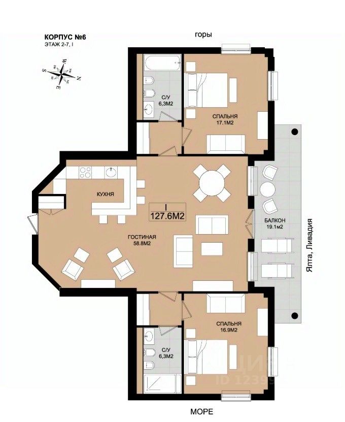 Продаются 3-комнатные апартаменты в сданном доме (Дом 6), срок сдачи: IV-кв. 2015, общей площадью 127.6 кв.м., на 6 этаже. Построен, сдан. С отделкой под ключ.