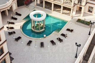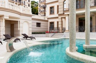 На территории ресторан, собственный СПА-центр с крытым бассейном, сауна, русская баня, хамам, фитобар, тренажерный зал. До пляжа 500 метров по закрытой охраняемой территории соседнего санатория.