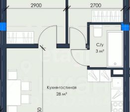 В квартире: кухня-гостиная с панорамными окнами 28 кв. м, две смежные спальни 12 кв. м и 15 кв. м, санузел совмещенный 3 кв. м, прихожая 4 кв. м.