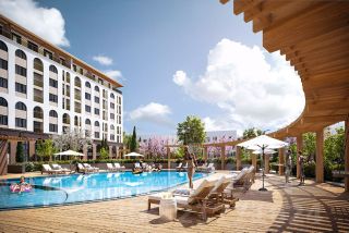 - открытый бассейн с зонами отдыха и шезлонгами