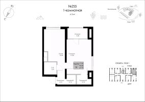 Продаётся 1-комнатная квартира в строящемся доме (Строение 1), срок сдачи: I-кв. 2027, общей площадью 47.7 кв.м., на 1 этаже.