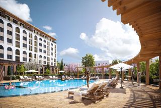 - открытый бассейн с зонами отдыха и шезлонгами