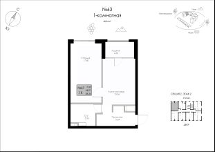Продаётся 1-комнатная квартира в строящемся доме (Строение 1), срок сдачи: I-кв. 2027, общей площадью 48.34 кв.м., на 2 этаже.
