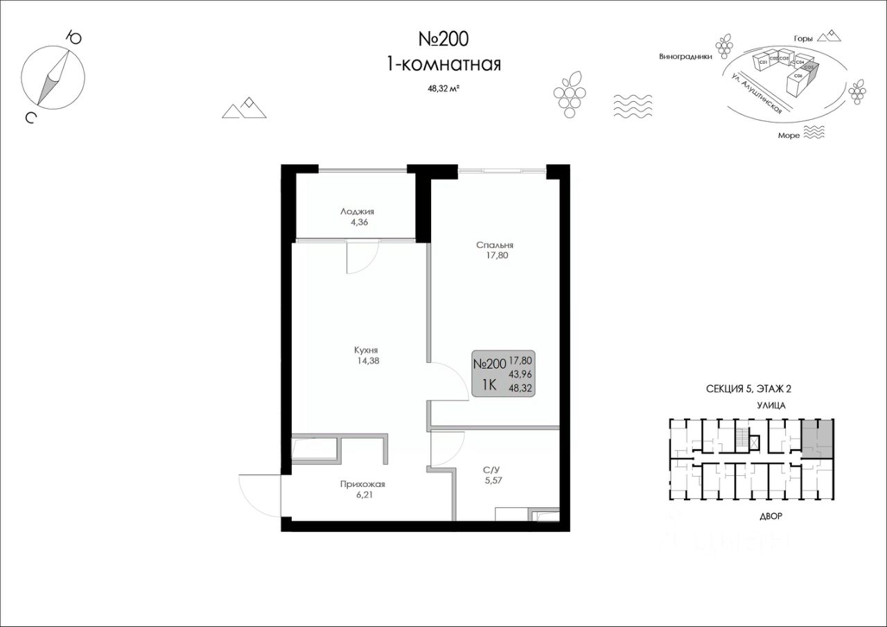 Продаётся 1-комнатная квартира в строящемся доме (Строение 1), срок сдачи: I-кв. 2027, общей площадью 48.32 кв.м., на 2 этаже.