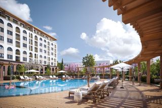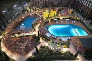 - открытый бассейн с зонами отдыха и шезлонгами