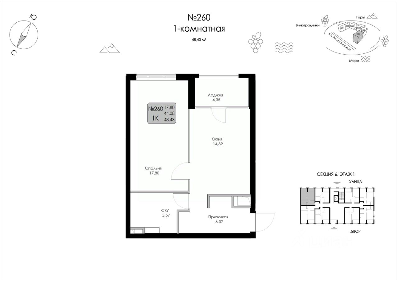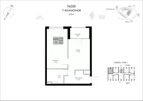 Продаётся 1-комнатная квартира в строящемся доме (Строение 1), срок сдачи: I-кв. 2027, общей площадью 48.43 кв.м., на 1 этаже.