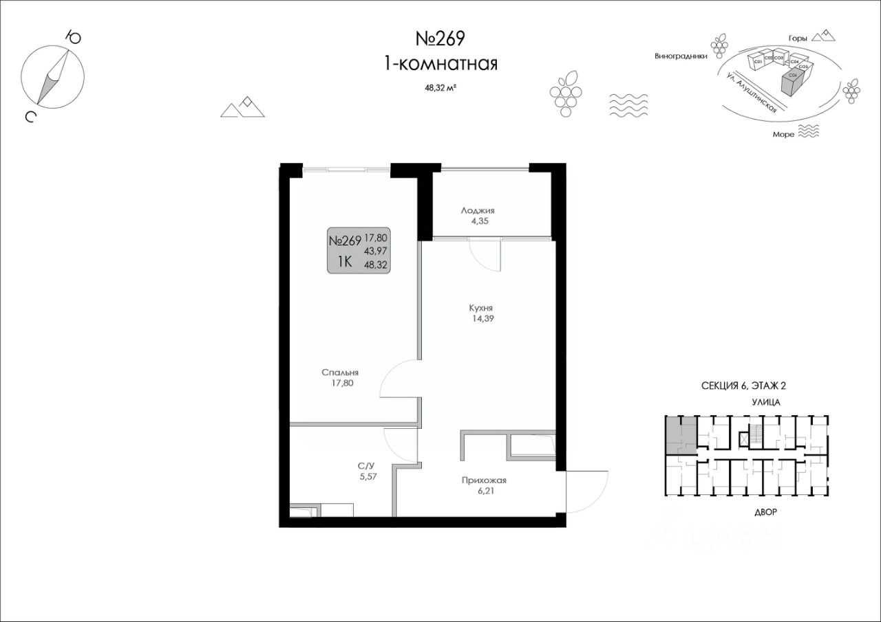 Продаётся 1-комнатная квартира в строящемся доме (Строение 1), срок сдачи: I-кв. 2027, общей площадью 48.32 кв.м., на 2 этаже.