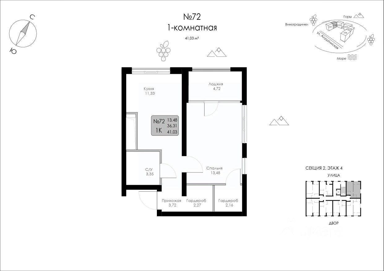 Продаётся 1-комнатная квартира в строящемся доме (Строение 1), срок сдачи: I-кв. 2027, общей площадью 41.03 кв.м., на 4 этаже.