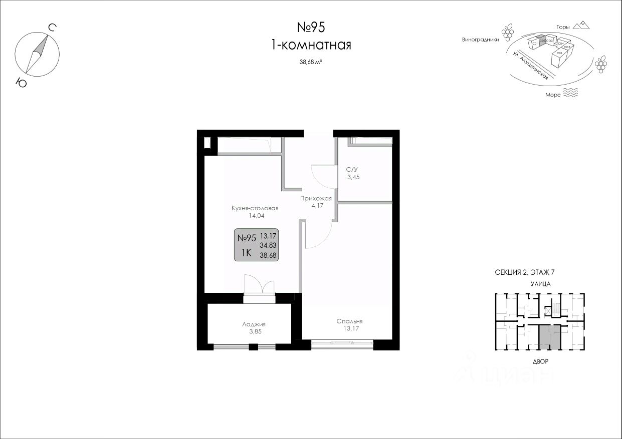 Продаётся 1-комнатная квартира в строящемся доме (Строение 1), срок сдачи: I-кв. 2027, общей площадью 38.68 кв.м., на 7 этаже.
