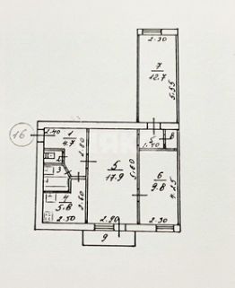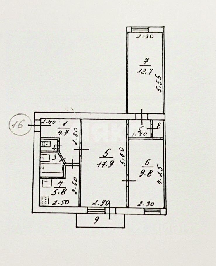 Общая площадь 55 кв.м, жилая 40,4 кв.м., кухня 6 кв.м.