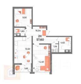 Светлая и просторная двухкомнатная квартира площадью 57.6 квадратных метров. Ее удобная планировка идеальна для современной жизни у вас будет отдельная изолированная комната, где вы сможете создать свое личное пространство комфорта и уюта.