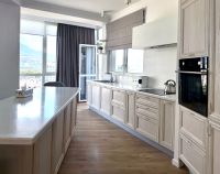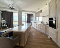Общая площадь жилого помещения составляет 137 м. кв., с удобной, продуманной до мелочей планировкой, которая включает в себя: просторную кухню гостиную - 45.5 м. кв., с панорамным остеклением; две спальни; три санузла; гардеробную комнату и террасу, с мангальной зоной. С квартиры открывается вид на море, горы и всю Ялту. В квартире сделан дизайнерский ремонт , с итальянской мебелью, немецкой кухней, выполненной на заказ. Все для максимального комфортного проживания.