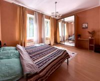 Квартира разделена на две отдельный со своими входами, планировка первой включает в себя: кухню, гостиную, совмещенный санузел и спальню окна которой выходят в закрытый парк на реликтовые деревья.