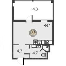 Срочно продаётся квартира студия общей площадью 46,09 м2