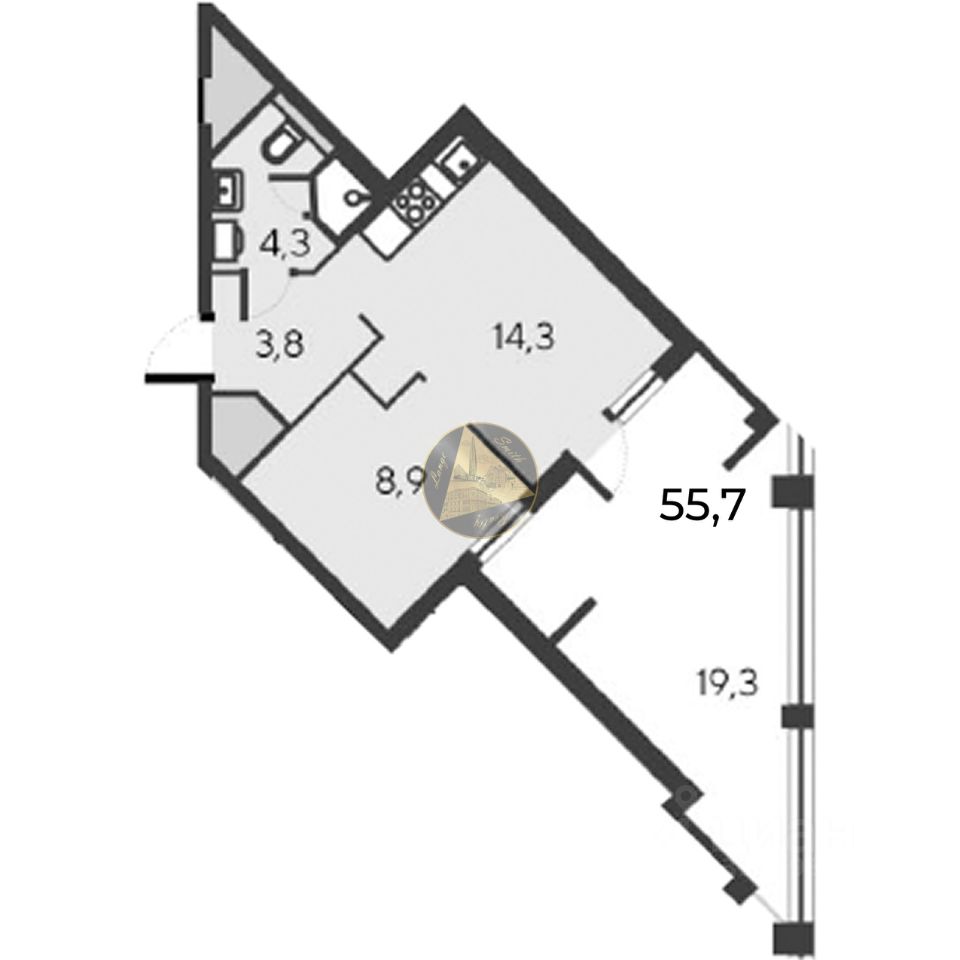 Срочно продаётся 1-комнатная квартира общей площадью 55,66 м2