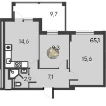 Срочно продаётся 2-комнатная квартира общей площадью 65,12 м2