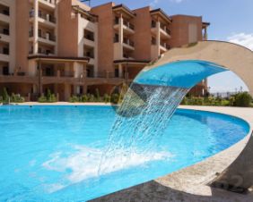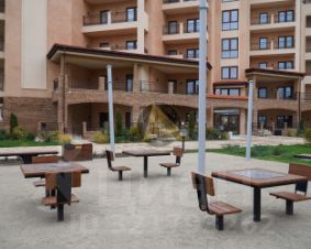 - На закрытой территории комплекса предусмотрено функциональное ландшафтное зонирование: оборудованы прогулочные и рекреационные зоны с фонтаном, рестораном и кафе, спа-зона, магазин, 2 подогреваемых бассейна и большая детская площадка.