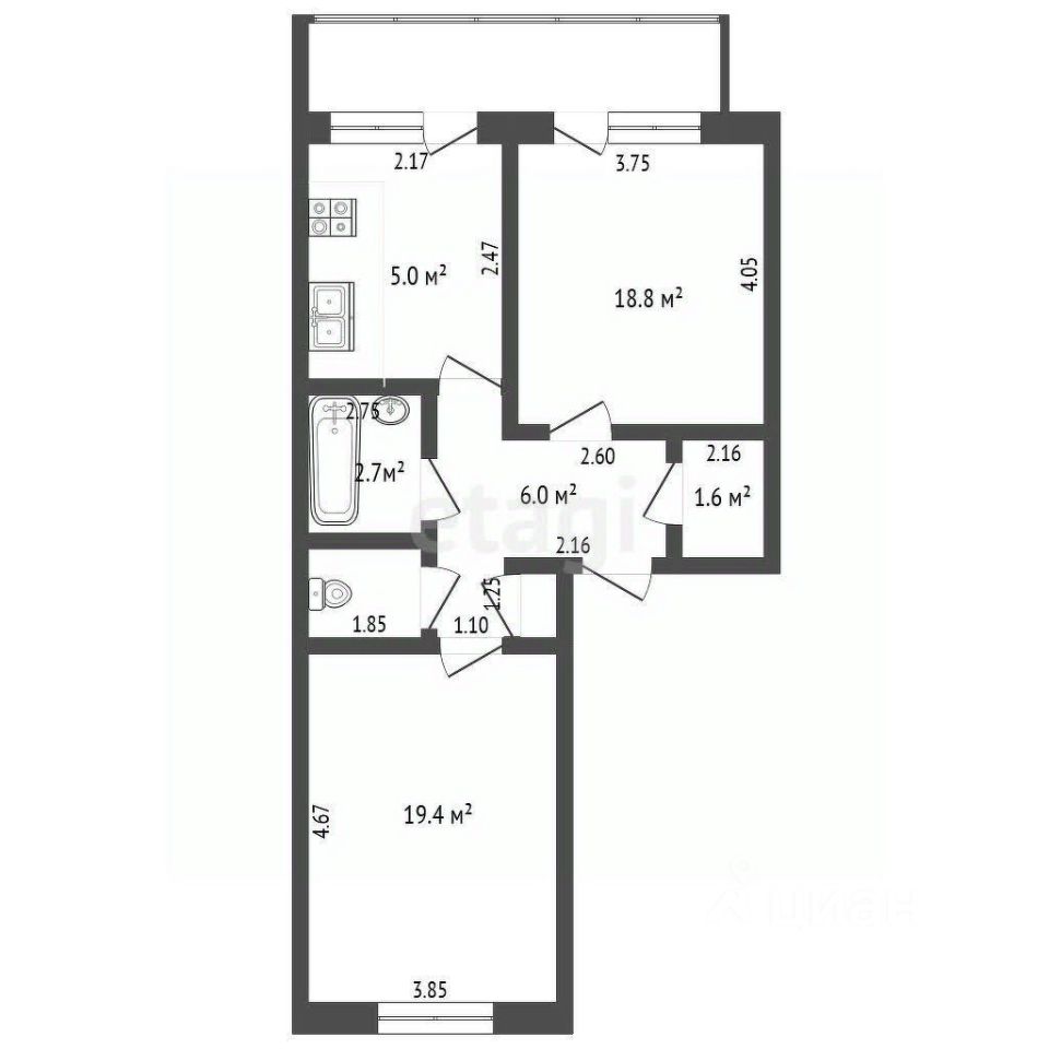 Площадь 49,3 кв. м.