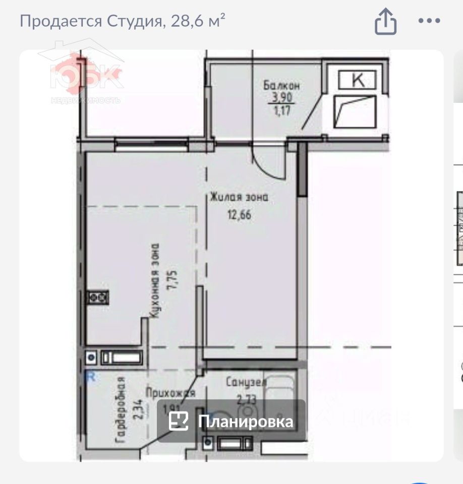Продаётся квартира площадью 31.29 м2 в новом ЖК СОК