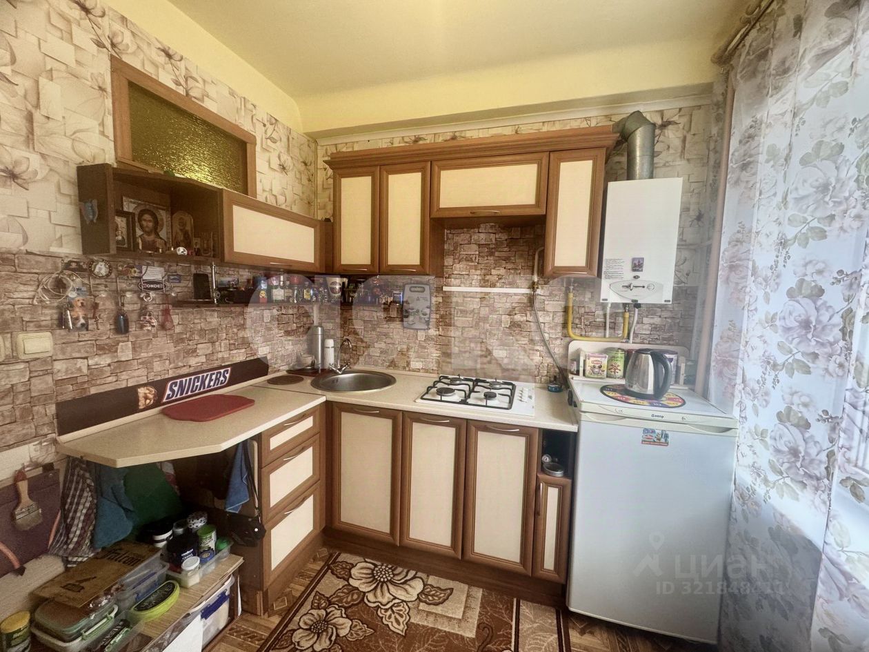 В кухне встроенный кухонный гарнитур, стиральная машинка. В квартире постелен линолеум, санузел в кафеле.