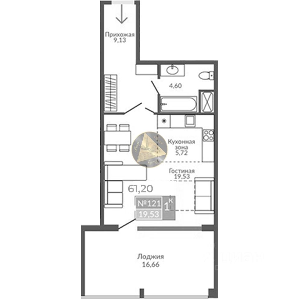 Срочно продаётся квартира-студия общей площадью 61,20 м2