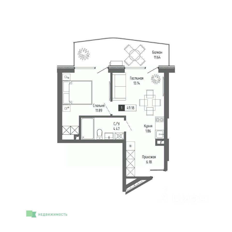 Общая площадь49,18 м²