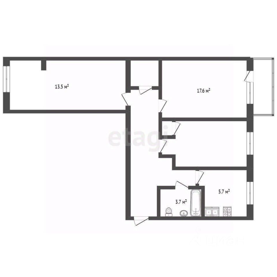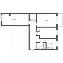 Квартира расположена на 4 этаже 5-го дома. Общая площадь составляет 57,8 кв.м. Жилая площадь составляет 39,6 кв.м., а кухня - 5,7 кв.м.