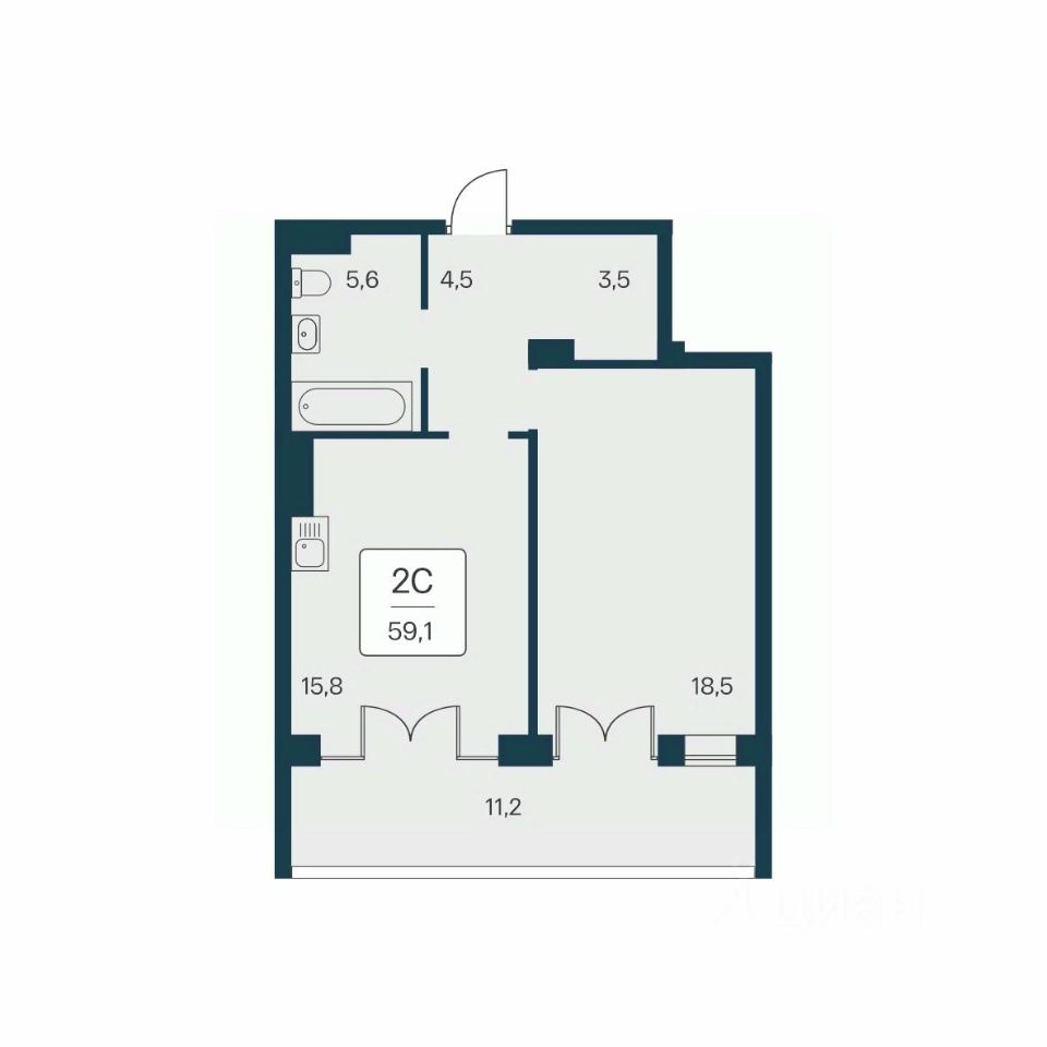 Общая площадь59,1 м²