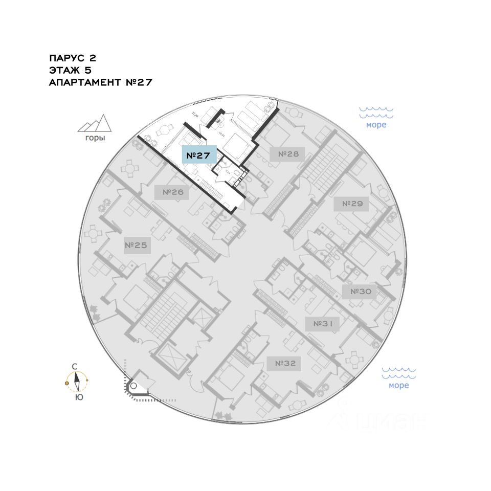 Продаются апартаменты общей площадью 54,32 м2 в премиальном гостиничном комплексе апартаментов "Паруса мечты" в историческом районе г. Алушты.