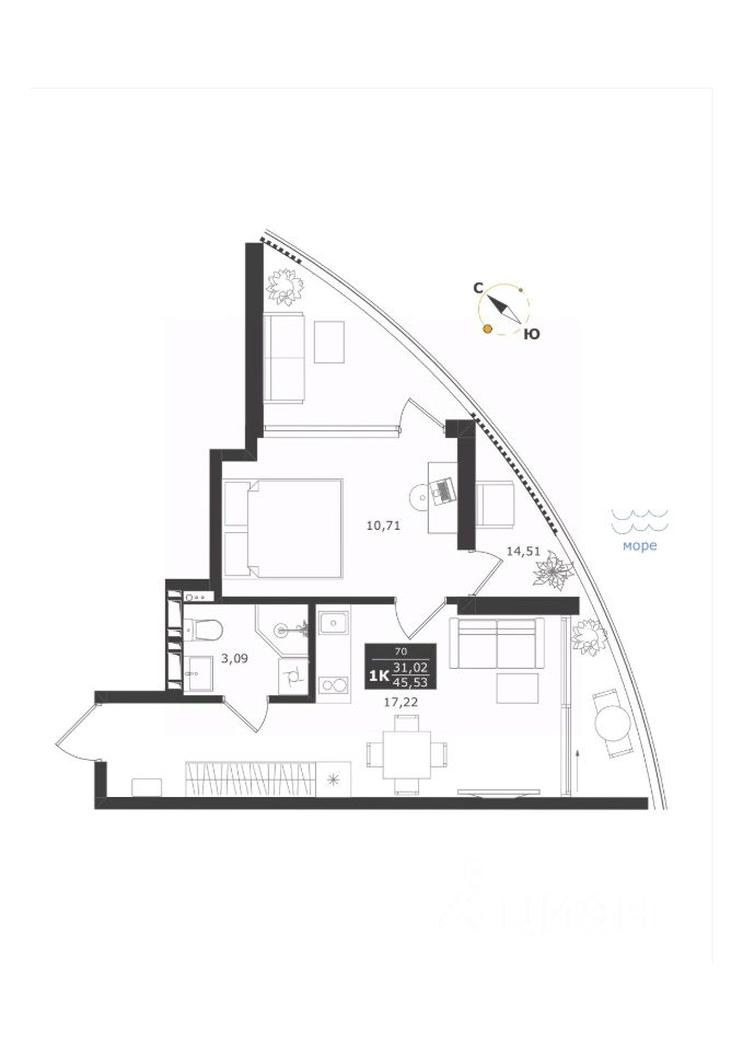 Продаются апартаменты общей площадью 45,53 м2 в премиальном гостиничном комплексе апартаментов "Паруса мечты" в историческом районе г. Алушты.