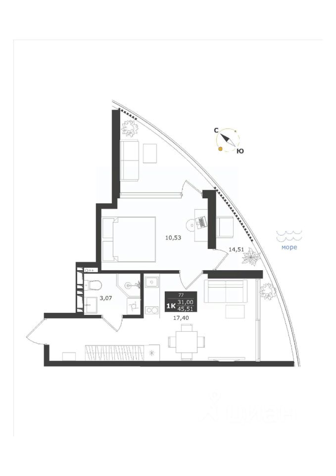 Продаются апартаменты общей площадью 45,51 м2 в премиальном гостиничном комплексе апартаментов "Паруса мечты" в историческом районе г. Алушты.