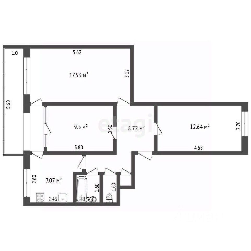 Эта квартира общей площадью 62,8 квадратных метров идеально подойдет как для комфортного проживания, так и для выгодной аренды.