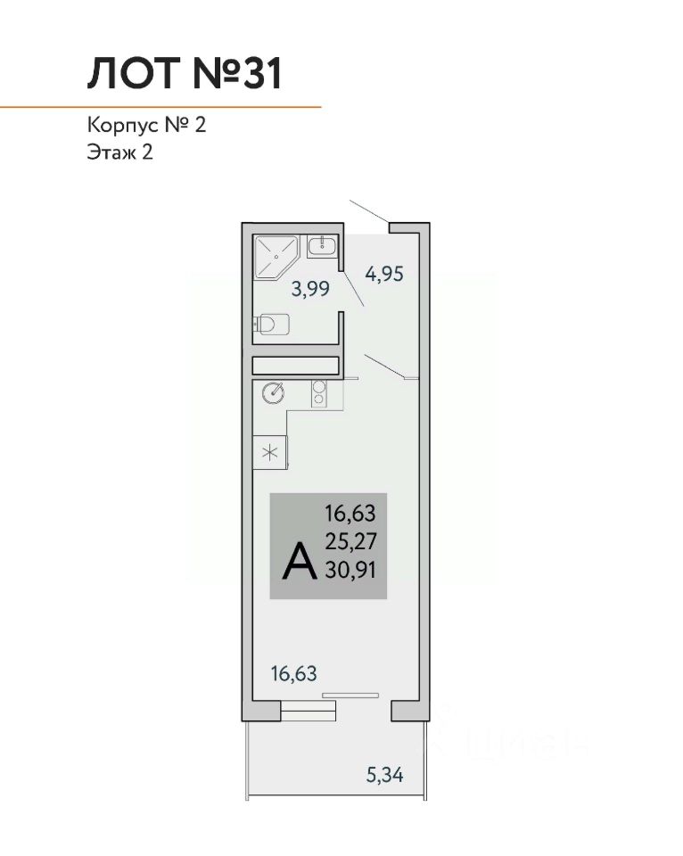 Квадратура апартаментов: от 25м2 до 80,4 м2.