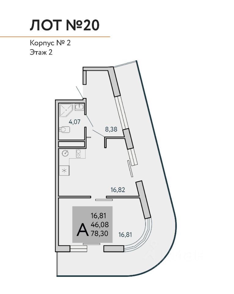 Квадратура апартаментов: от 25м2 до 80,4 м2.