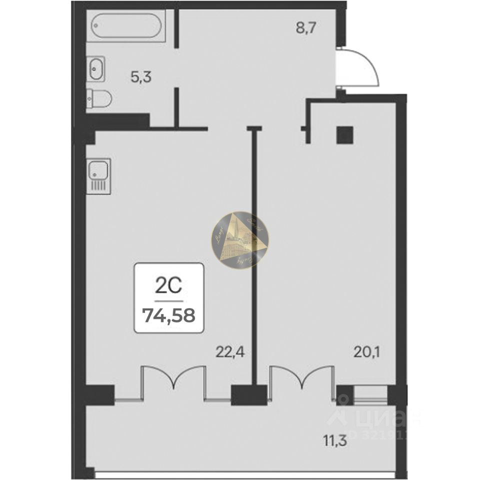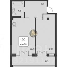 Срочно продаётся 1-комнатная квартира общей площадью 74,58 м2