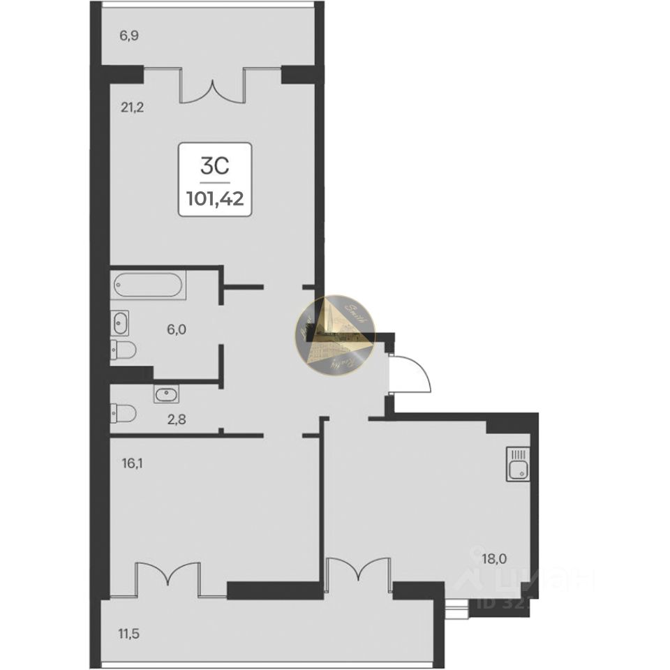 - Общая площадь квартиры 101.42 м2
