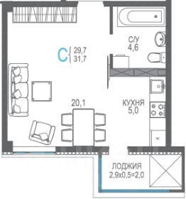 Видовая студия в центре города, удачная планировка позволяет воплотить удобные дизайнерские решения!