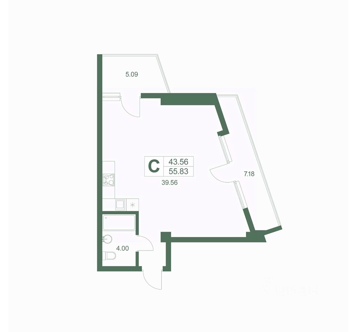 Общая площадь55,83 м²