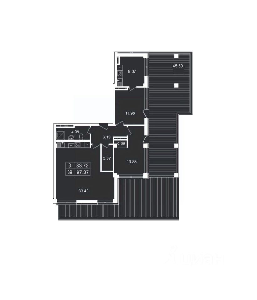 Общая площадь97,37 м²